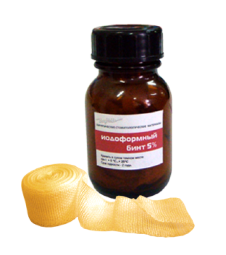 Йодоформный бинт предназначается для заживления постэкстракционных зубных лунок, при дезинфекции верхнечелюстных синусов. При контакте с раной препарат выделяет чистый йод, являющийся мощным антисептиком.